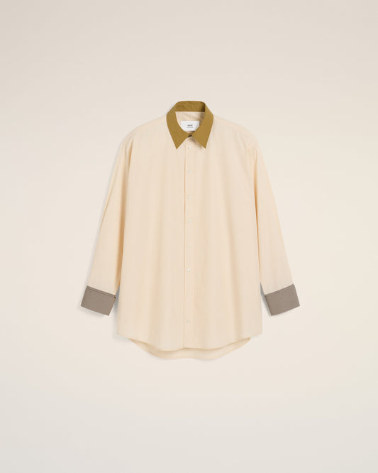 Beige Cotton Classic Collar Loose Shirt